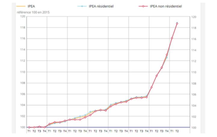 Au niveau du parc immobilier global, les prix ont fortement augmenté tout en ralentissant notamment dans les travaux de plomberie, d’installation de chauffage et de conditionnement d’air (+3,1 % au 2ème trimestre 2022 contre +4,6 % au 1er trimestre). Ils accélèrent cependant dans les autres travaux de construction spécialisés (+2,8 % après +2,4 %).