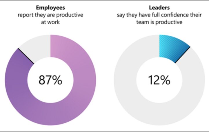 Une étude menée par Microsoft auprès de 20 000 personnes dans 11 pays* met en lumière le décalage de perception entre collaborateurs et managers concernant le télétravail. Si 87% des employés estiment qu’ils sont autant, voire plus productifs en télétravail qu’au bureau, 85% des managers expriment des doutes sur le fait que leurs équipes travaillent efficacement à distance. Seulement 12% des employeurs disent avoir une totale confiance dans le fait que leurs équipes sont productives à distance…